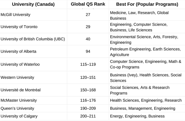 Top Canadian Universities
