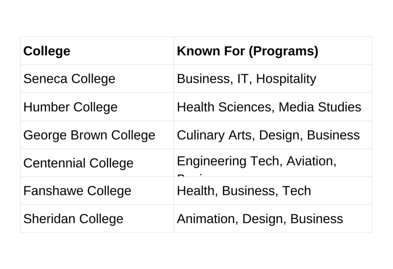 Note: Colleges offer diplomas, advanced diplomas, and pathways to universities or careers in Canada.