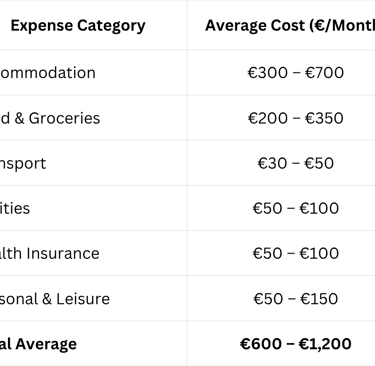 Evidence of sufficient funds to cover tuition fees and living expenses (approx. €9,000–€10,000/year).Health Insurance