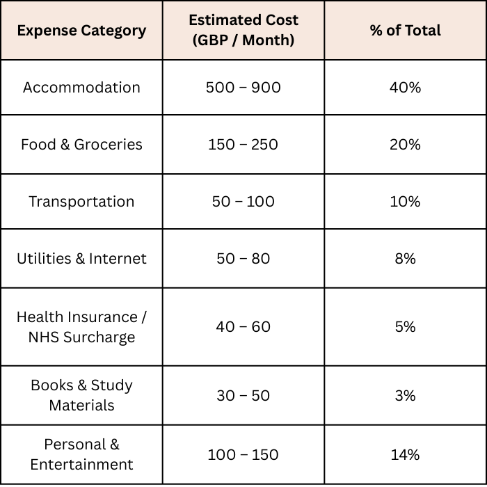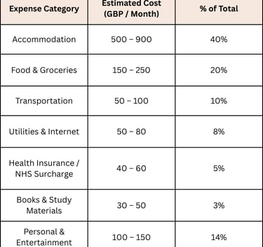 Average Monthly Living Cost in the UK (for International Students)