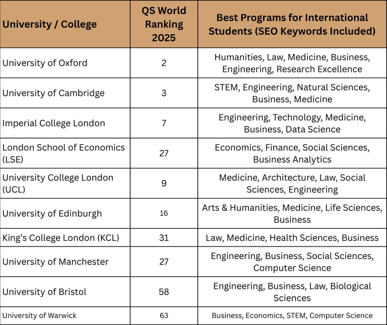LSE & UCL: Ideal for Business, Economics, and Social Sciences with strong international networks.